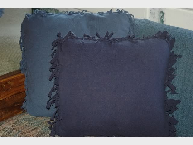 Pillows. When the weather changes from the heat of summer to the brisk evenings of fall I bring out the couch pillows and blankets. To save money I buy pillows at the thrift store. I do not pay more than 50 cents a piece for them. Each season I try to save fabric from various things ( as you will see) to recover the pillows. It just freshens up our old couches and gives the room a new look.