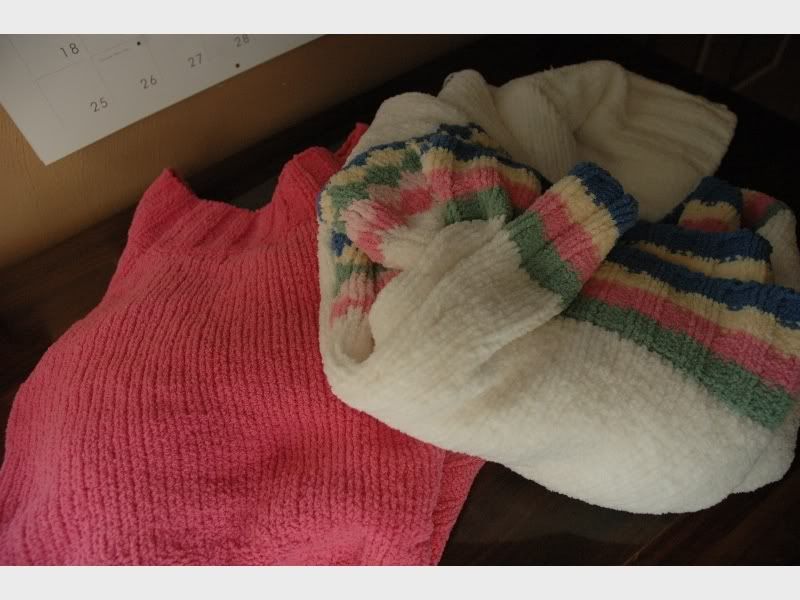 Here are two sweaters I plan to recycle. They are both chenile yarn and very soft. They will make awesome stocking caps.